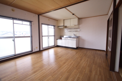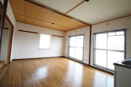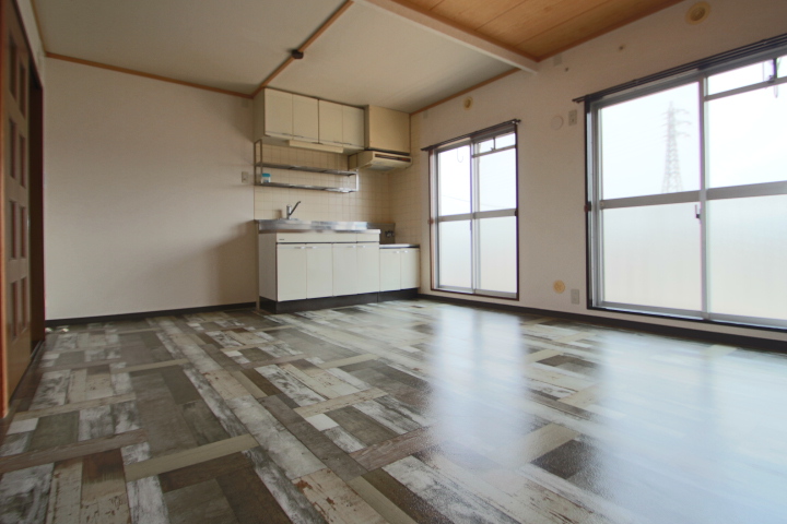 ■リビングとキッチンは12畳の2LDKです。家族が揃って団らんできる広さです。明るく使い勝手が良いです。