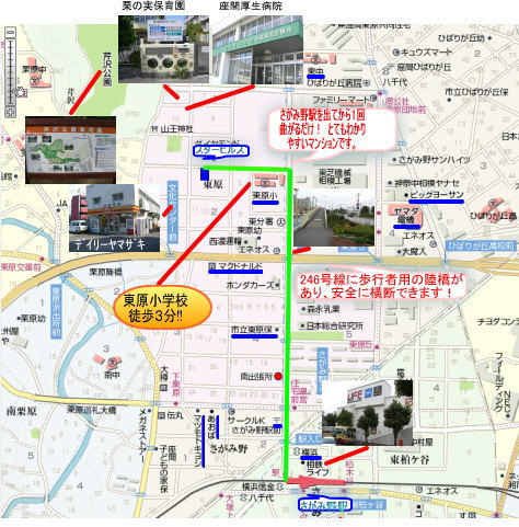 ■東原小学校まで徒歩3分。お子様の通学に安心です。